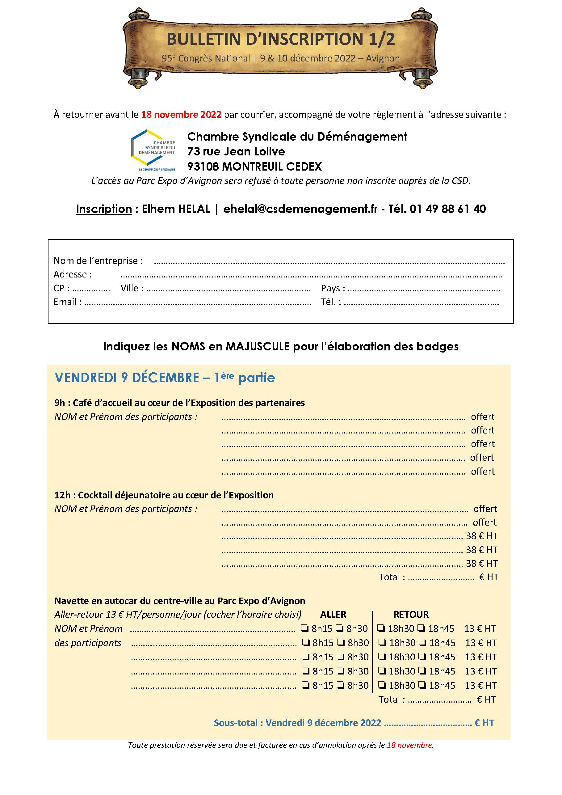 Téléchargez la fiche d'inscription (adhérents CSD uniquement) |